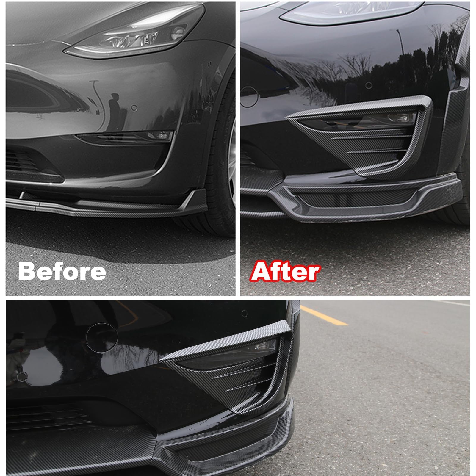 Fancemot Carbon Fiber Front Bumper Fog Light Cover Compatible with Tesla Model Y 2021-2024, Fog Light Trim, Fog Light Eyebrow for Model Y Decorative Accessories